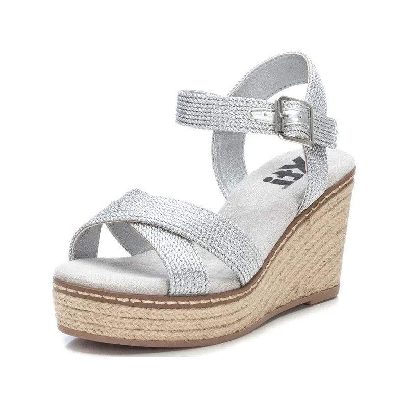 Taille : 39 (ES) - XTI 45173 Sandales compensées femme argenté, textile, jute, véganes, 7cm